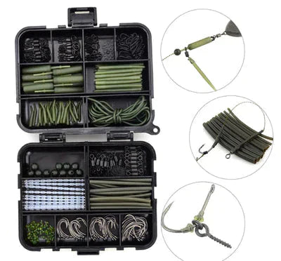 ✅ Quantidade: 434pcs equipamento de pesca de carpa definido com articulações, ganchos, mangas, tubos de borracha, etc.